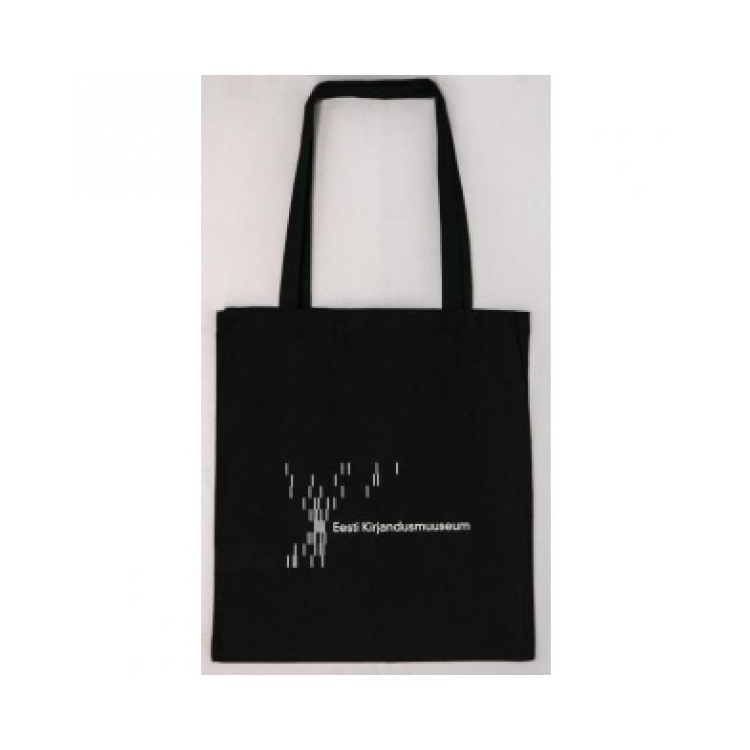 Riidest must ostukott Eesti Kirjandusmuuseumi logoga.